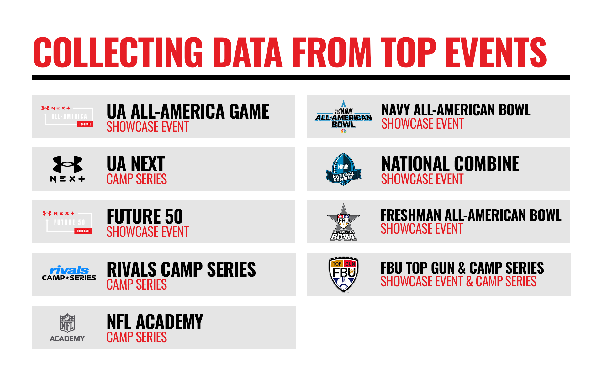 Through exclusive access to premier events like the Under Armour Camp Series and Future 50, we provide proprietary data and HD camp footage that give college staffs a clear edge in identifying and tracking elite talent.